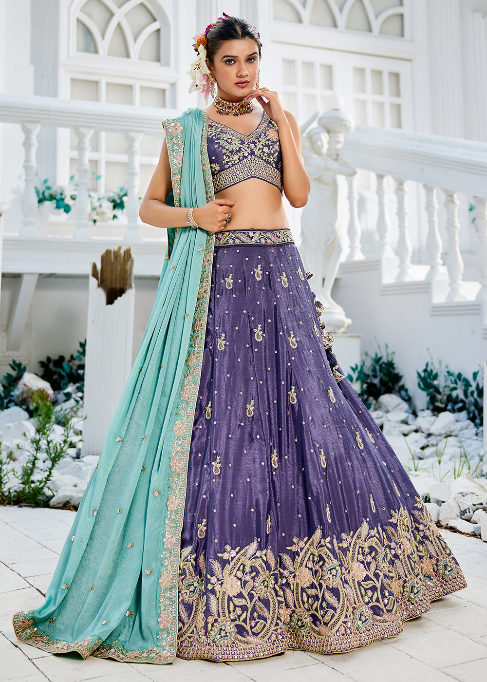 Purple Poly Chiffon Sequins Work Bridesmaids Lehenga Choli