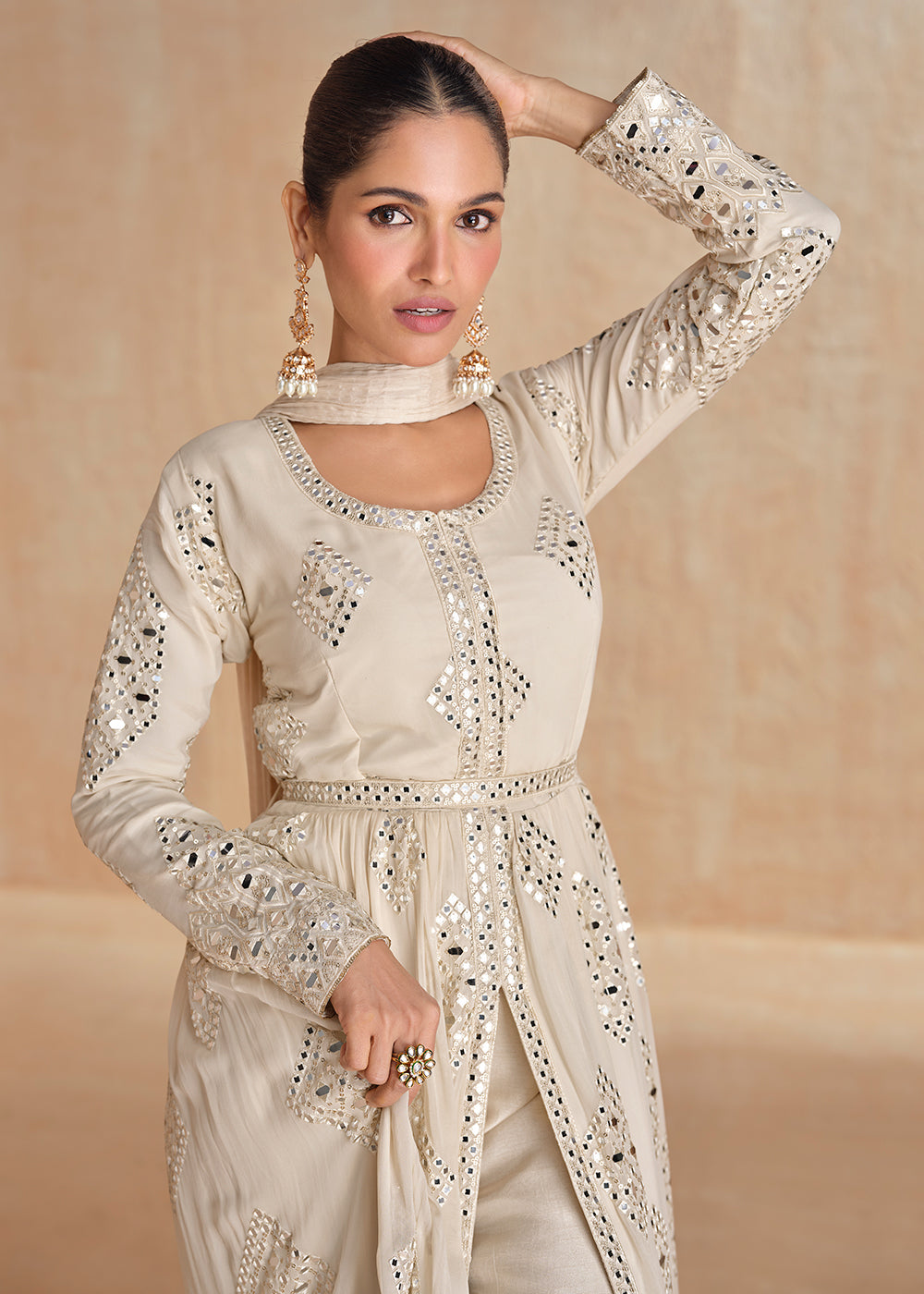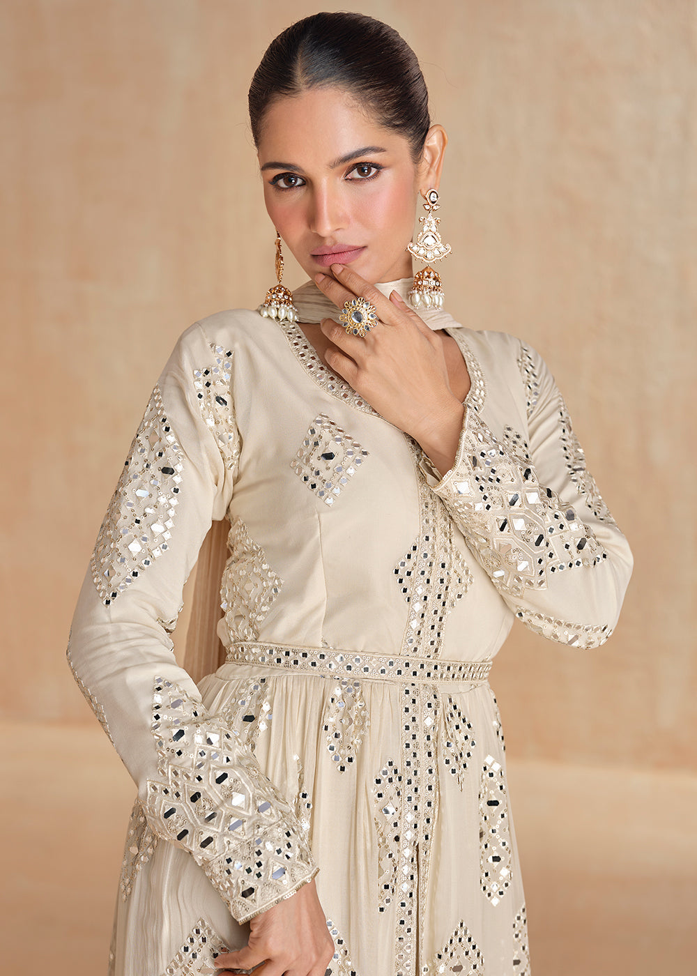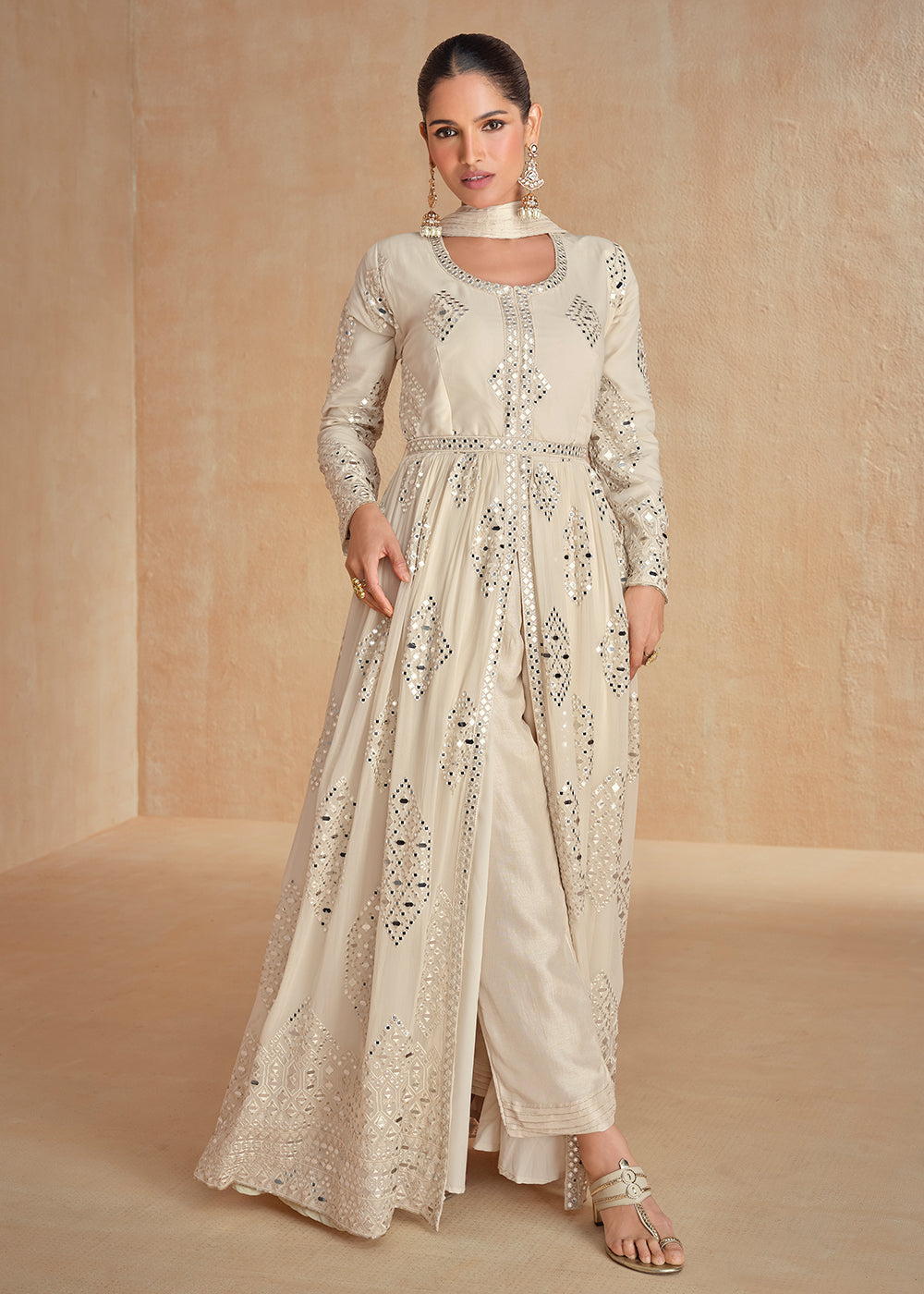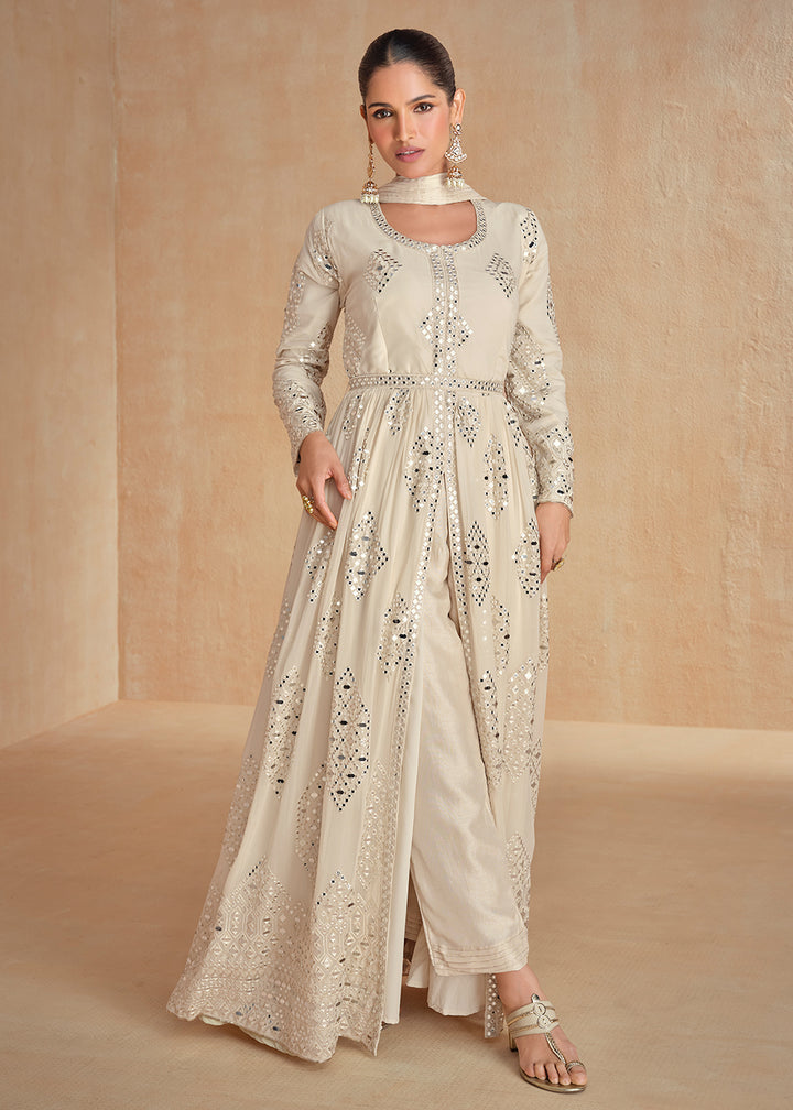 Ivory Front Slit Style Embroidered Wedding Anarkali Suit