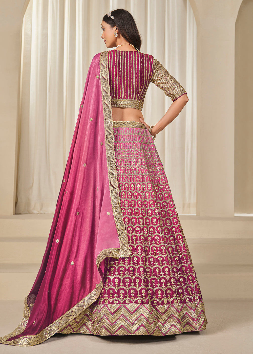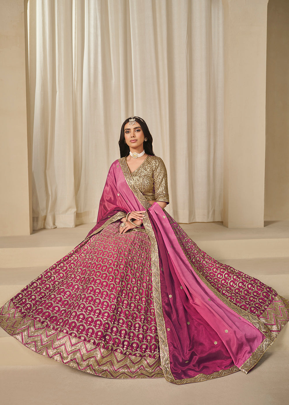 Premium Pink Chinnon Silk Wedding Festive Lehenga Choli