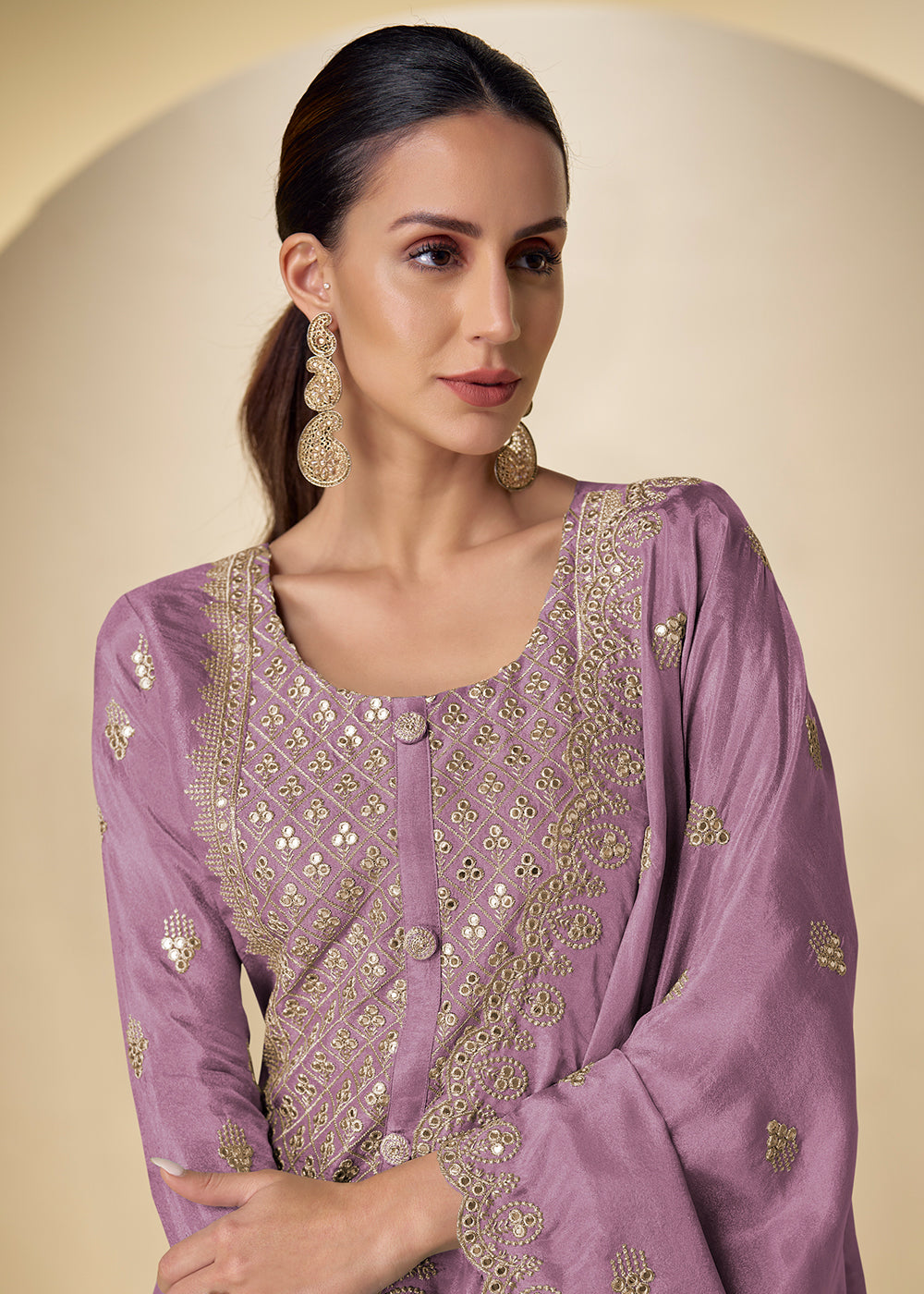 Lilac Front & Back Embroidered Shimmer Silk Palazzo Suit