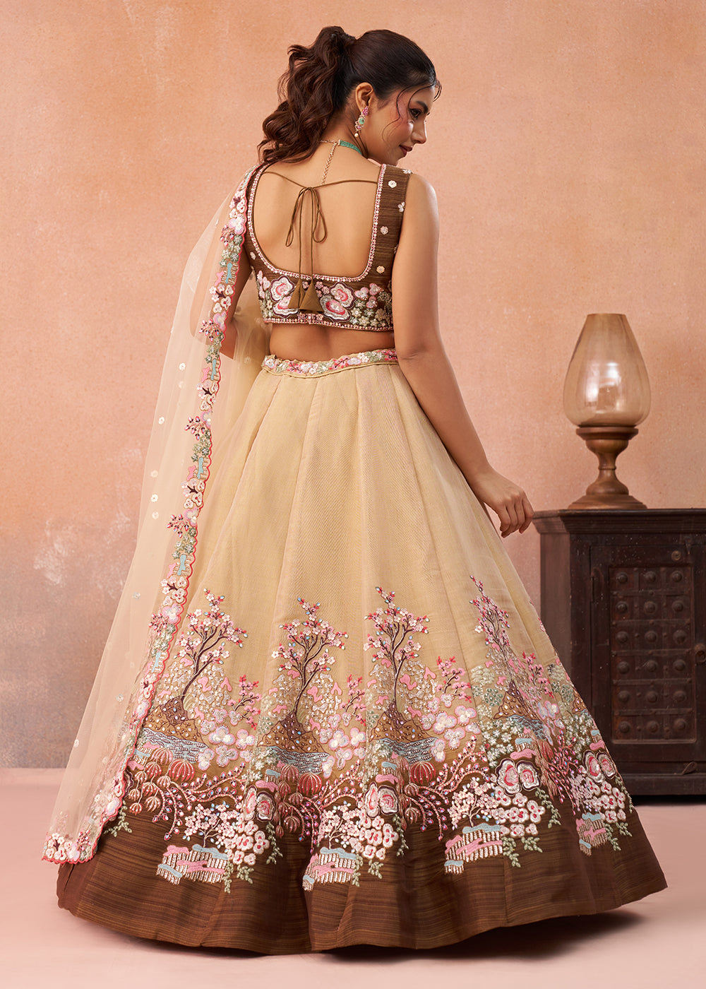 Cream & Coffee Embroidered Wedding Lehenga Choli