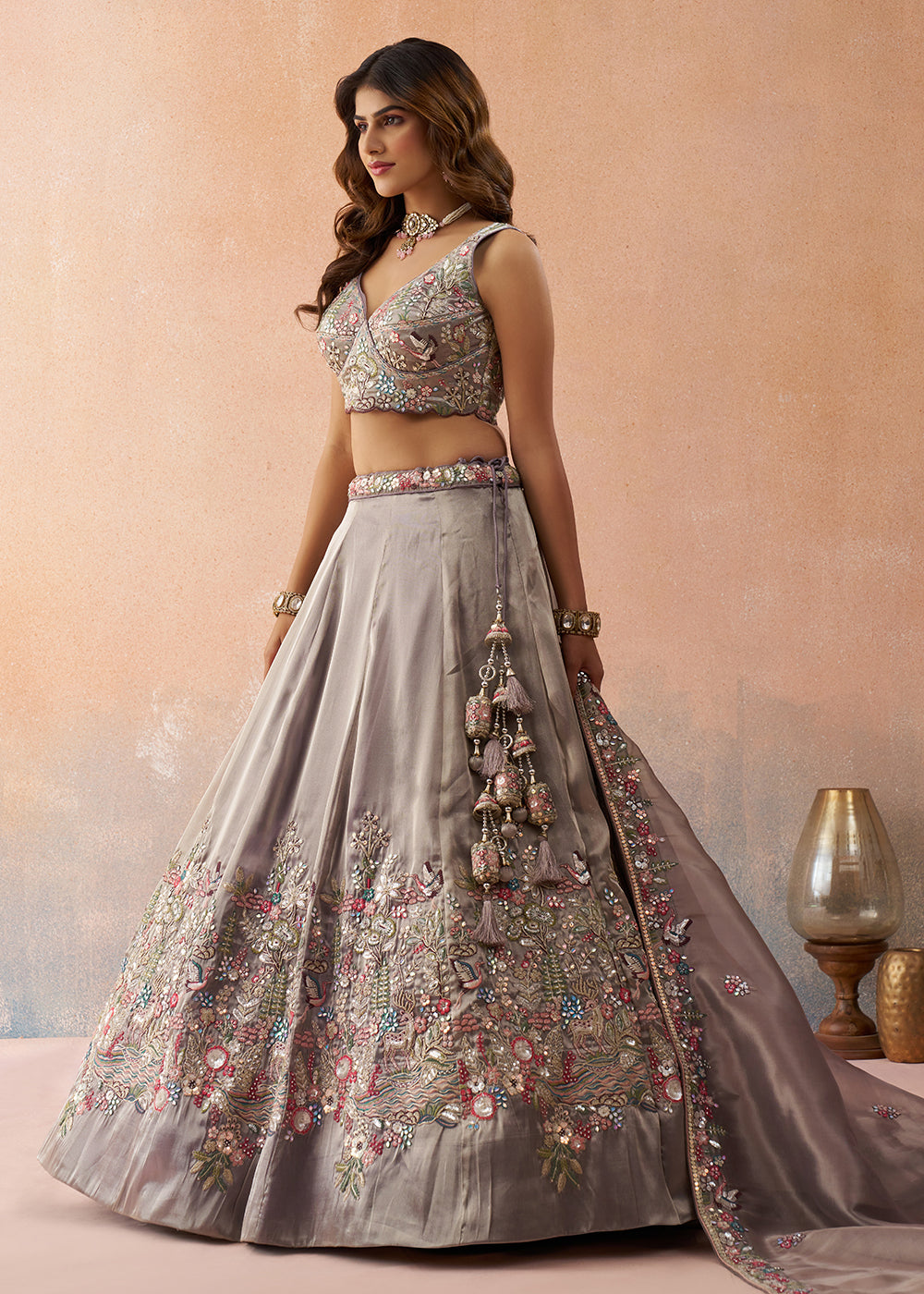 Lavender Premium Tissue Fabric Festive Lehenga Choli by Empress