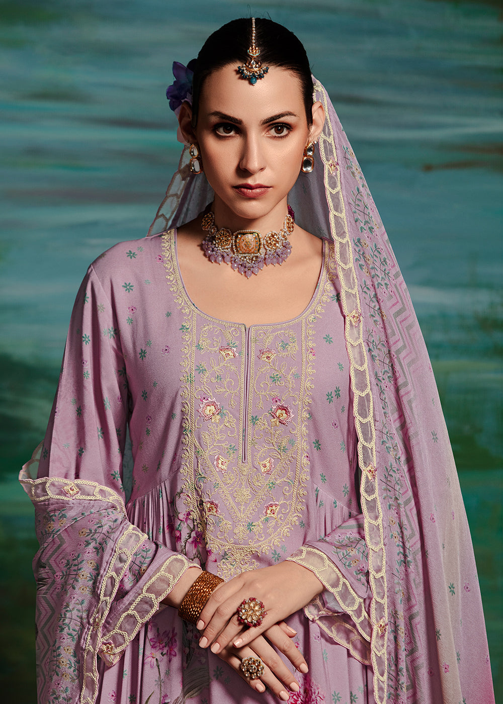 Pink Embroidered Muslin Festive Style Salwar Suit
