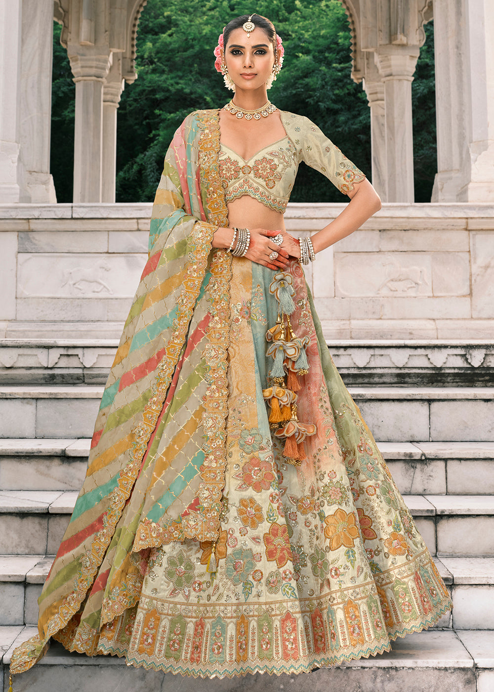 Designer Multi Cream Premium Silk Bridal Lehenga Choli by Empress