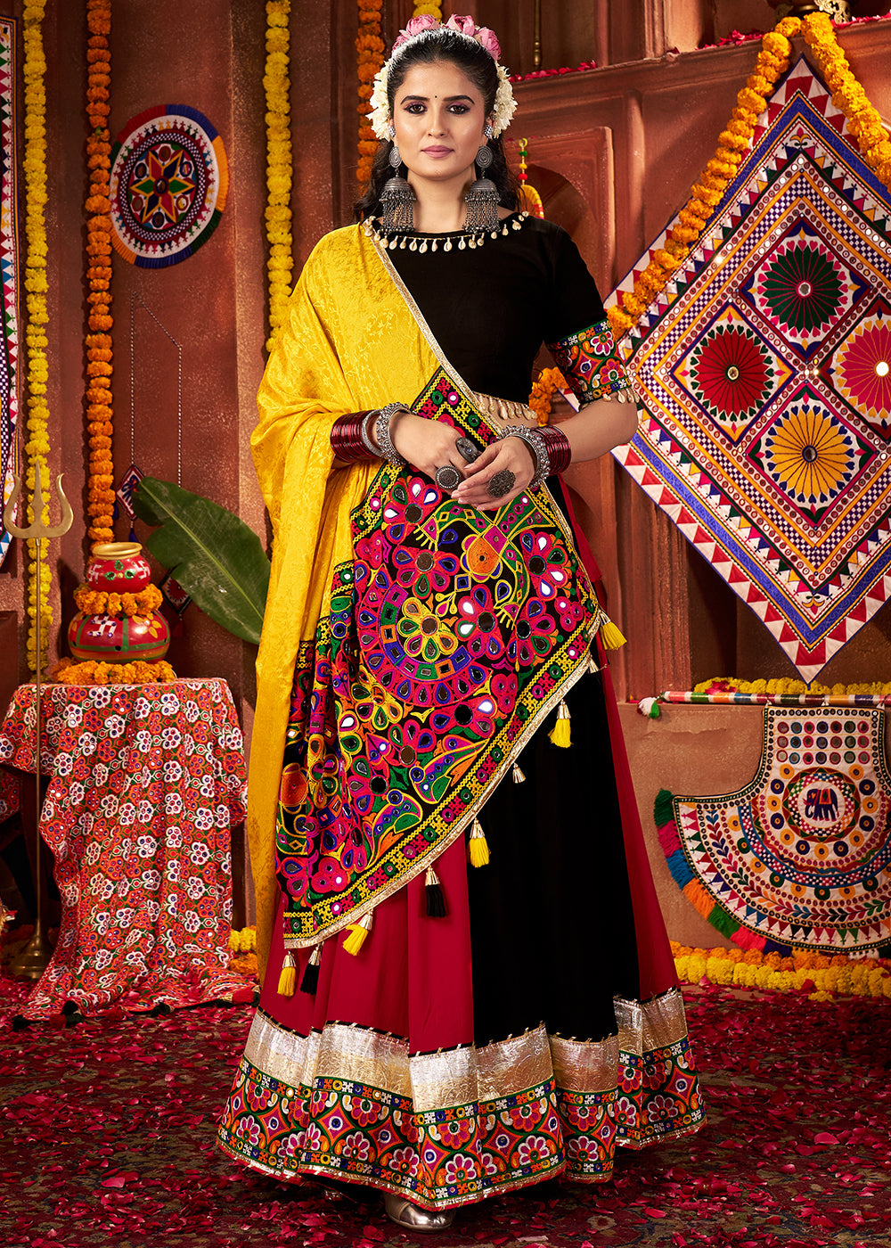 Multi & Black Viscose Cotton Mirror Chaniya Choli for Navratri
