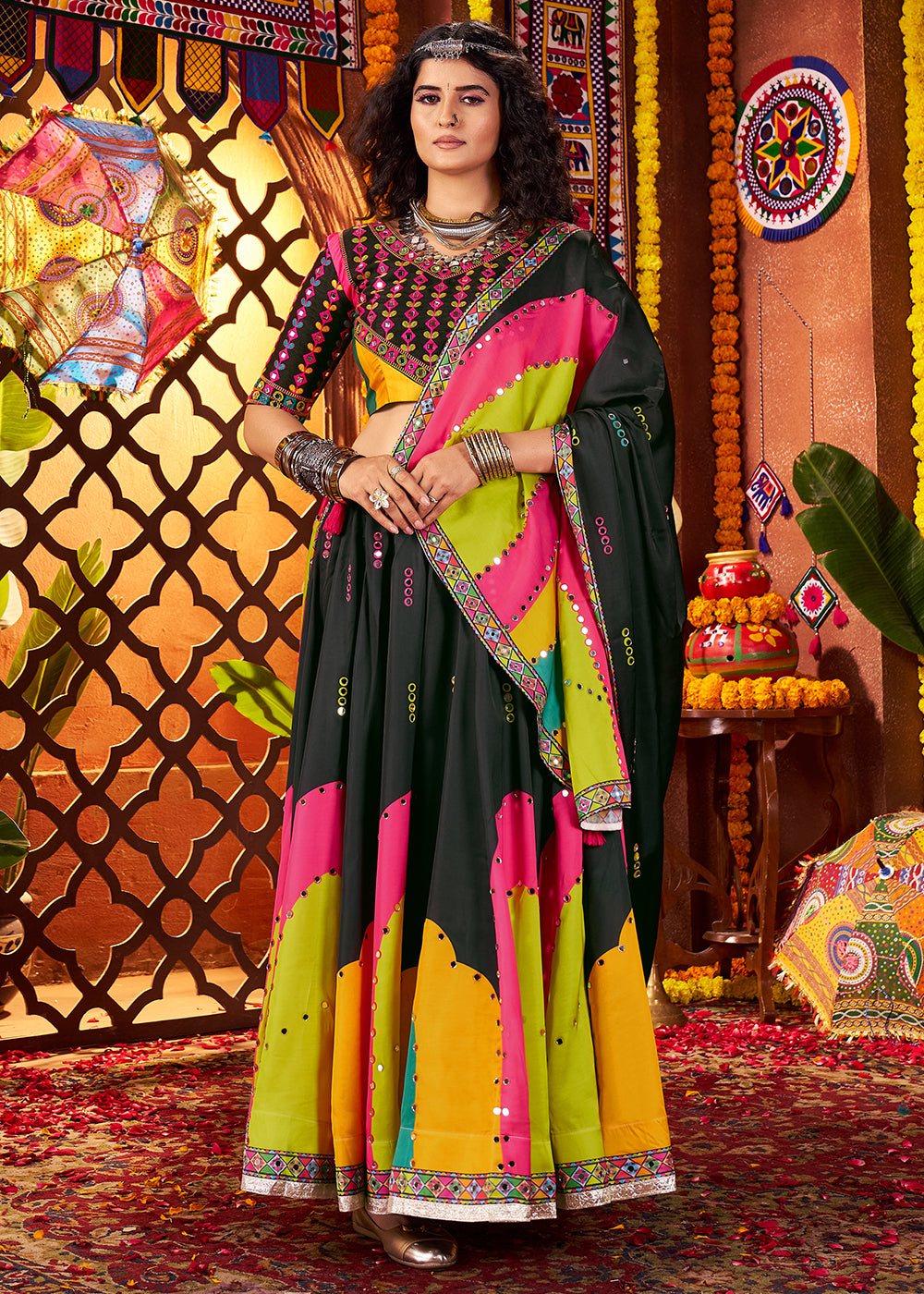 Muti Threads & Mirror Black Chaniya Choli for Navratri
