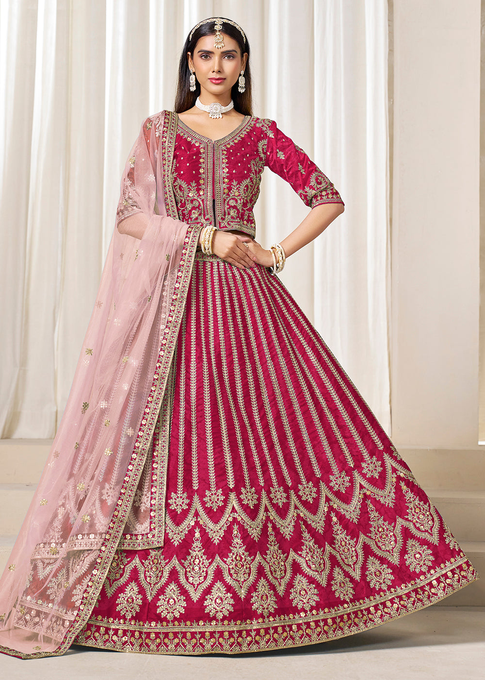 Hot Pink Embroidered Art Silk Wedding Lehenga Choli